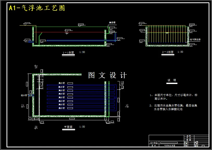 所有进入废水处理系统的废水,其水量和水质随时都可能发生变化,这对废水处理构筑物的正常运转非常不利。水量和水质的波动越大,处理效果就越不稳定,甚至会使废水处理工艺过程遭受严重破坏。为减少水量和水质变动对废水处理工艺过程的影响,在废水处理系统之前宜设置调节池,以资均和水质、存盈补缺,使后续处理构筑物在运行期间内能得到均衡的进水量和稳定的水质,并达到理想的处理效果。 主要起均衡水量作用的调节池称为均量池,主要起均和水质作用的调节池称为均质池,既可均量又可均质的调节池称为均化池。 设计调节池时应考虑的问题: a.调节池的几何形伏宜为方形或圆形,以利形成完全混合状态。长形池宜设多个进口和出口。 b.调节池中应设冲洗装置、溢流装置、排除漂浮物和泡沫的装置,以及洒水消饱装置。 c.为使在线调节池运行良好,宜设混合和曝气建置。混合所需的功率约为0.004 ~0.008 kW/m3池容。所需曝气量约为0.01~0.015m3空气/( min·m2之池表面积)。 d.调节池出口宜设测流装置,以监控所调节的流量。提升泵可设于调节池的前面或后面。由于该厂废水水量变化均比较大,所以采用矩形均量池,中间进水中间出水。