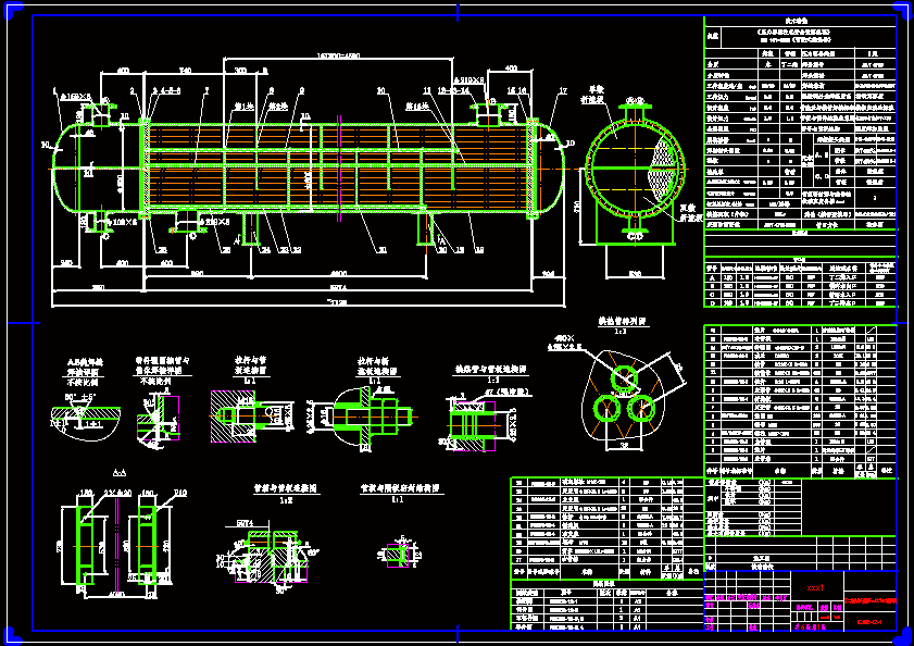 乙烯冷却设备设计-固定管板式换热器 固定管板式换热器是管壳式换热器的一种典型结构,也是目前应用比较广泛的一种换热器。这类换热器具有结构简单、紧凑、可靠性高、适应性广的特点,并且生产成本低、选用的材料范围广、换热表面的清洗比较方便。固定管板式换热器能承受较高的操作压力和温度,因此在高温高压和大型换热器中,其占有绝对优势。 本次设计的题目是乙二醇塔底进料换热器的设计,课题预期达到的目标为: 换热器面积的计算(实际换热面积:92.6mm2),管程壳程压力降的计算(小于等于0.4MPa),工艺结构尺寸的计算:管程数(1管程),换热管的确定(内径:19mm 数量:500根),壳体内径(600mm),壳程数(1壳程)的计算,折流板的选型(形式:弓形折流板,数量:13)等。 换热器的强度计算:对筒体、管箱厚度的计算和校核,对壳体及管箱各处开孔补强,对延长部分兼做法兰的计算及强度核算。经水压试验、压力校核后显示结果全部合格。 换热器的结构设计:折流板、法兰(甲型平焊法兰)、换热管、支座(鞍式支座)、垫片(石棉橡胶板垫片)的规格及选型。 完善设计图纸及设计说明书。