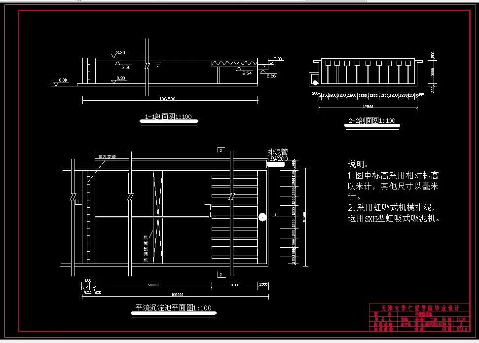 根据确定的净水厂位置,选择适宜采用的处理构筑物,确定设计采用的处理构筑物的形式及数量;进行各构筑物的设计计算,确定各构筑物和各主要构件的尺寸并绘制部分计算简图,设计时要考虑到构筑物及其构件施工上的可能性,并符合要求。