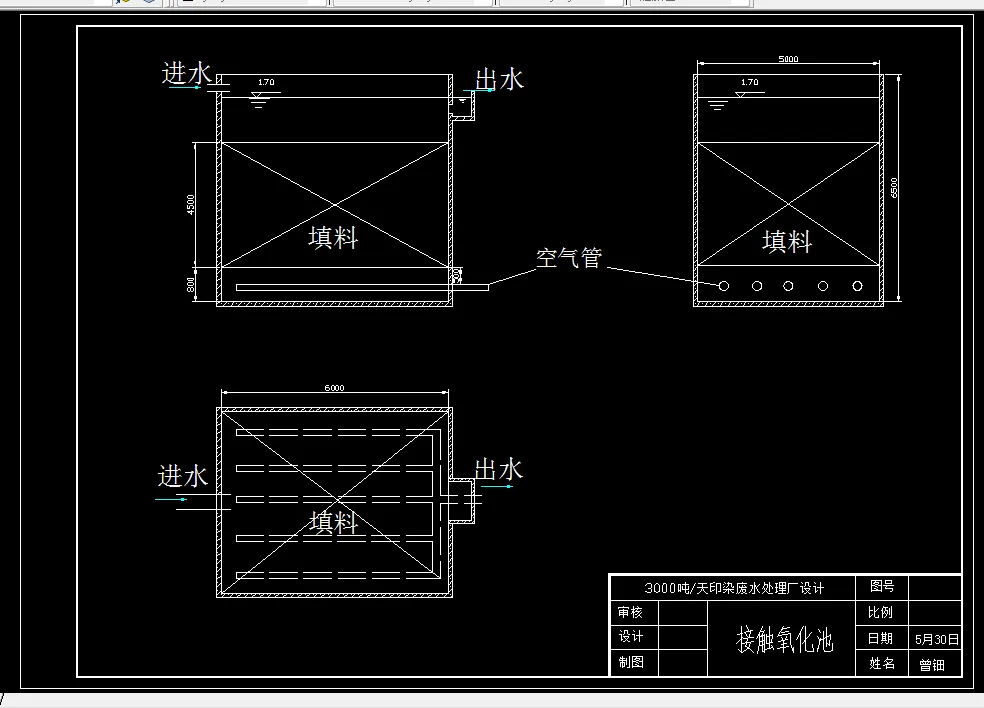 本毕业设计主要是用混凝沉淀和生物接触氧化法来处理排放出来的印染废水,该废水的处理条件是设计日排放量为3000m3/d。
