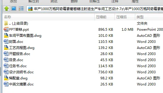D643-年产1000万瓶阿奇霉素葡萄糖注射液生产车间工艺设计 下载积分:50 资料编号: D643