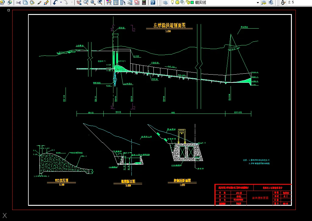 (4)溢洪道设计 主要包括溢洪道布置、溢洪道各部分尺寸计算、泄槽水面线计算和消能工设计等内容,经校核泄流能力满足要求。