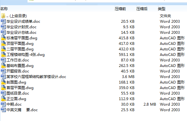 毕业设计题目为高层办公楼,建筑面积6628.44 ,抗震设防烈度为7度;上部结构采用框架结构,框架抗震等级为三级;基础采用柱下独立基础。