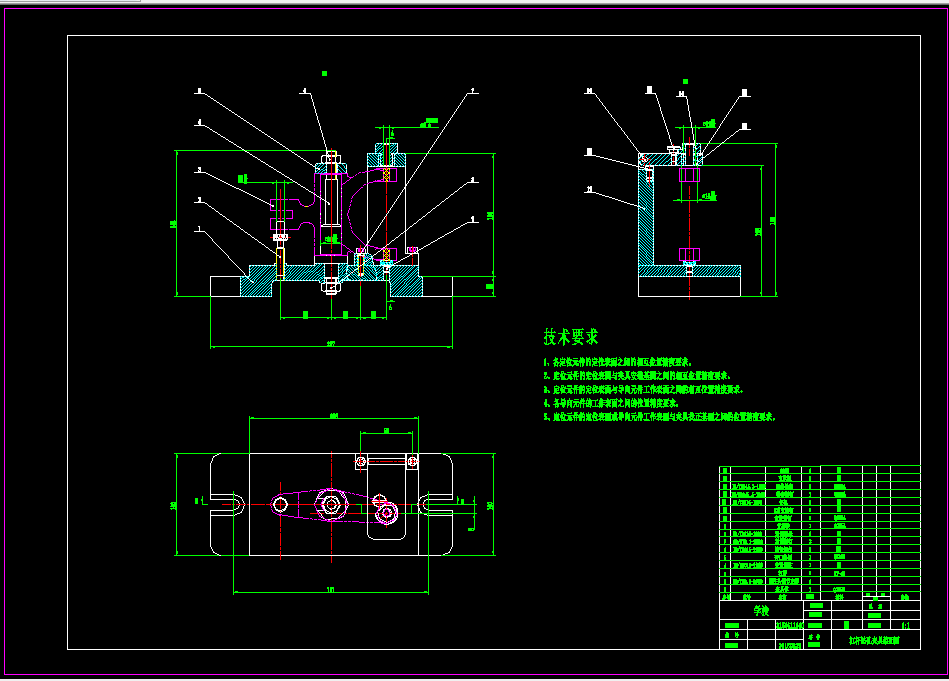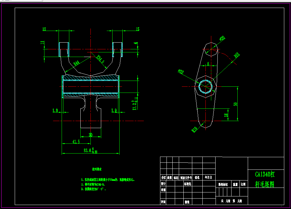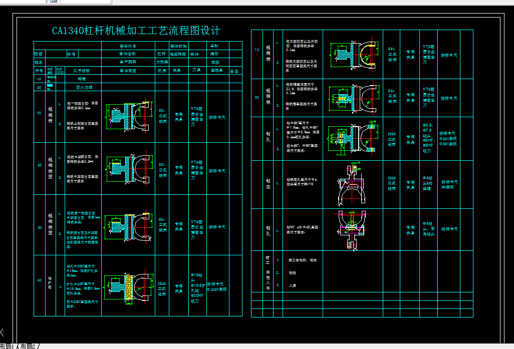 CA3140自动车床杠杆的机械加工工艺规程及钻6H7孔夹具设计是包括零件加工的工艺设计、工序设计以及专用夹具的设计三部分。在工艺设计中要首先对零件进行分析,了解零件的工艺再设计出毛坯的结构,并选择好零件的加工基准,设计出零件的工艺路线;接着对零件各个工步的工序进行尺寸计算,关键是决定出各个工序的工艺装备及切削用量;然后进行专用夹具的设计,选择设计出夹具的各个组成部件,如定位元件、夹紧元件、引导元件、夹具体与机床的连接部件以及其它部件;计算出夹具定位时产生的定位误差,分析夹具结构的合理性与不足之处,并在以后设计中注意改进。