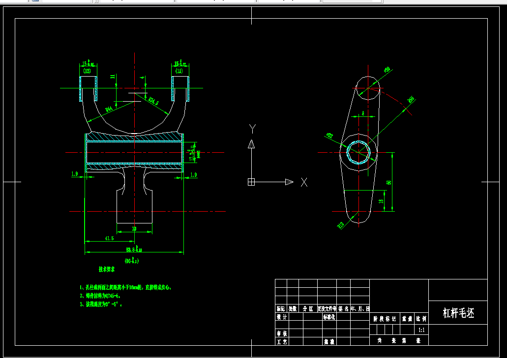 杠杆加工工艺规程及其夹具设计是包括零件加工的工艺设计、工序设计以及专用夹具的设计三部分。在工艺设计中要首先对零件进行分析,了解零件的工艺再设计出毛坯的结构,并选择好零件的加工基准,设计出零件的工艺路线;接着对零件各个工步的工序进行尺寸计算,关键是决定出各个工序的工艺装备及切削用量;然后进行专用夹具的设计,选择设计出夹具的各个组成部件,如定位元件、夹紧元件、引导元件、夹具体与机床的连接部件以及其它部件;计算出夹具定位时产生的定位误差,分析夹具结构的合理性与不足之处,并在以后设计中注意改进。