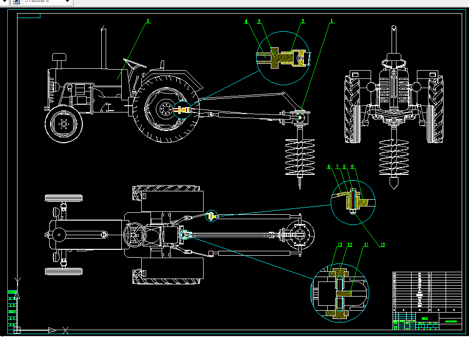 现代新型挖坑机的研发主要向系列化、多功能和高性能方向发展。本植树挖坑机采用悬挂式与拖拉机三点悬挂式联接,即钻头在悬挂支臂的一端,支臂的另一端置于拖拉机悬挂支点上。