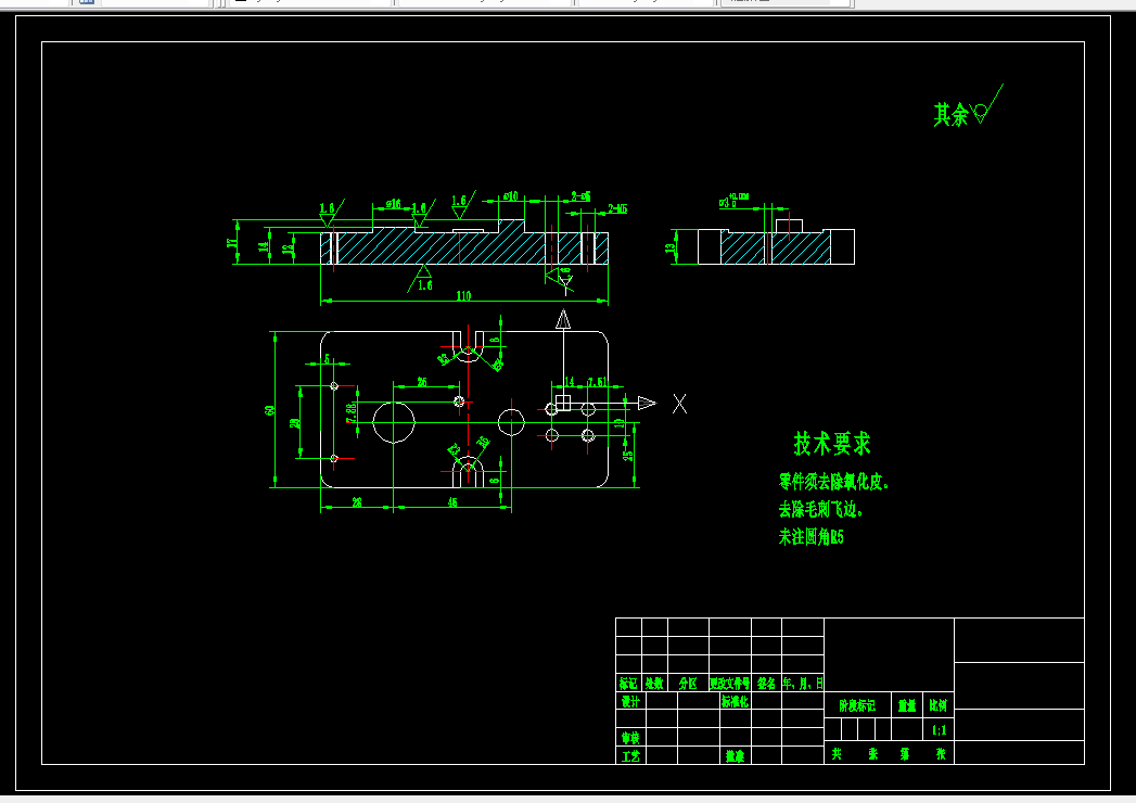 杠杆加工工艺规程及夹具设计是包括零件加工的工艺设计、工序设计以及专用夹具的设计三部分。在工艺设计中要首先对零件进行分析,了解零件的工艺再设计出毛坯的结构,并选择好零件的加工基准,设计出零件的工艺路线;接着对零件各个工步的工序进行尺寸计算,关键是决定出各个工序的工艺装备及切削用量;然后进行专用夹具的设计,选择设计出夹具的各个组成部件,如定位元件、夹紧元件、引导元件、夹具体与机床的连接部件以及其它部件;计算出夹具定位时产生的定位误差,分析夹具结构的合理性与不足之处,并在以后设计中注意改进。