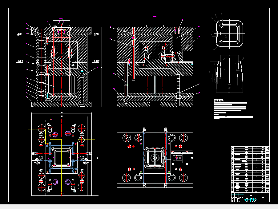 本次课题针对家用刨冰机机体,完成了注射模拟分析和模具的结构设计。选择 PP 作为塑件的材料。其整体外观上近似四棱台。外、内层侧壁上有φ20mm 和φ10mm 两个同心孔。首先使用 UG 软件对塑件进行三维造型,然后导入到 Moldflow 软件中对塑件进行注射模拟分析。根据模拟分析结果确定浇注系统和冷却系统的总体设计方案,并依据相关数据优化成型工艺。根据家用刨冰机机体的塑件生产图样进行塑件的结构及成型工艺性分析。然后选择模具分型面并确定了型腔数目。选用的成型设备为 XS-ZY-1000 型注射机。确定了型芯型腔相关零件的结构与推出机构的设计方案,并完成了总装图结构设计。模具采用一模一腔、两点浇口、滑块侧抽芯结构。