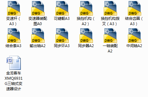 本设计的目的是设计一款用于金龙客车的手动变速器。本设计采用中间轴式五挡变速器,这种变速器具有如下显著的优点:一是其直接档的传动效率高,磨损少,噪声最小;二是在齿轮中心距不大的条件下仍可以获得比较大的一档传动比。