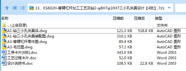 KS602H-等臂杠杆加工工艺及钻2-φ8H7φ10H7三小孔夹具设计 下载积分:20 资料编号: KS602H