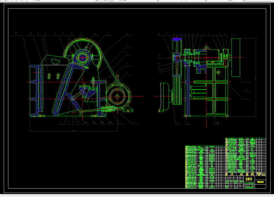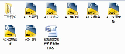 本次所设计的复摆颚式破碎机为小型颚式破碎机。设计时计算了破碎机的各种工作参数,主要包括:动颚齿板、皮带轮、电动机、轴承、机架、飞轮、偏心轴等的参数。同时还对破碎机机械结构进行了平面图的绘制和三维模型的创建。