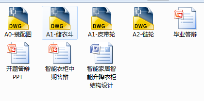 本次毕业设计主要研究的是智能升降衣柜的结构设计,利用电机作为驱动装置,通过一系列的传动装置,对衣柜内衣服放置的方式以及衣服选取的方式进行了设计,采用了升降的传动方式,能够最大化的利用衣柜内的空间,同时方便寻找衣物的时候不翻动过多不相干的衣物,便于整理合收拾。同时针对本次设计的智能控制部分进行了简单叙述。