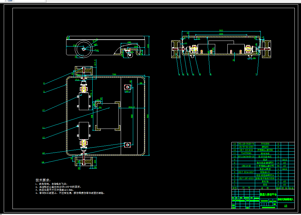 通过总体设计,结构选型,对各个部分的驱动、传动系统进行设计,然后进行详细的计算校核,得出机械臂和移动平台的详细参数,通过CAD绘图对结构进行绘制和优化,完成机器人的设计。