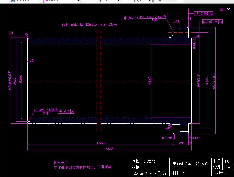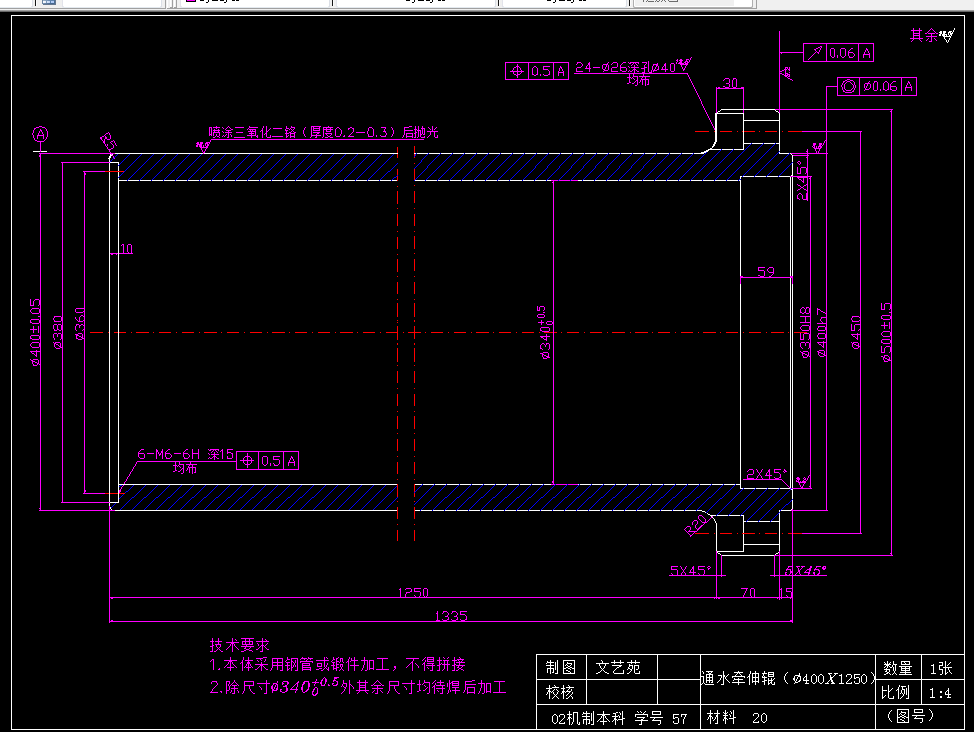 涤纶短纤维后处理设备七辊牵伸机牵伸辊属于牵伸机的工作部分,合理设计将提高七辊牵伸机的性能。牵伸机是纺丝后处理的主要设备之一,根据纺丝的工艺要求来确定牵伸机的数量和功率。本次设计的七辊牵伸机主要是为了提高年产量,从牵伸机组的整体设计出发,按照总牵伸倍数合理布局各级牵伸倍数,按照年产量计算最大牵伸旦数,最大牵伸力;按照牵伸力求出第三牵伸机辊筒的受力情况,依据最大辊筒受力来对辊筒进行强度、刚度校核,及其螺钉的校核。