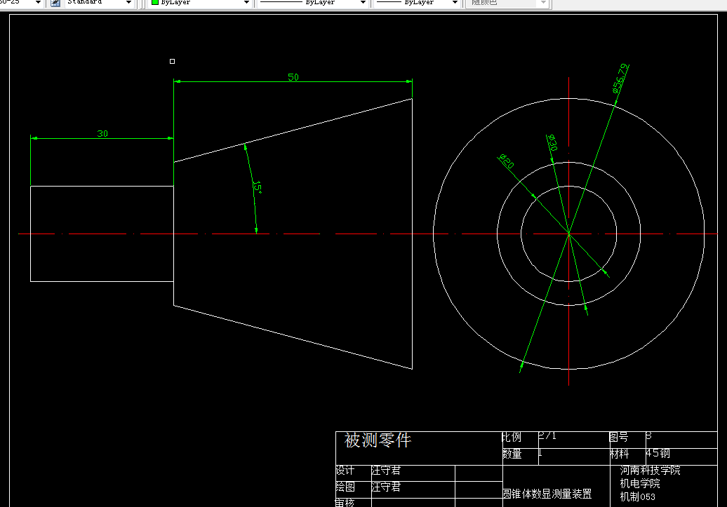 关键词:圆锥体端面直径,测量装置,精度分析,工艺分析设计