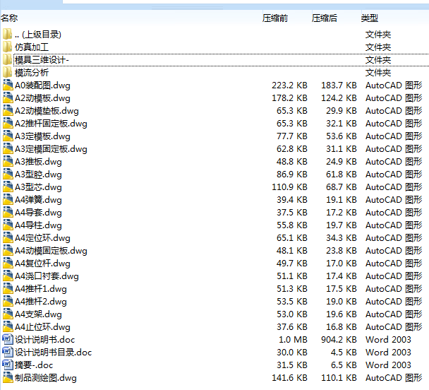 2、若题目上备注三维,则表示文件里包含三维源文件,由于三维组成零件数量较多,为保证预览截图的简洁性,本站将三维文件夹进行了打包。三维及CAD预览截图,均为本站电脑打开软件进行截图的,保证能够打开,下载原件超高清,下载后解压即可;