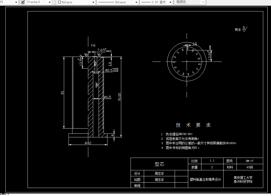 本论文根据工程实际的需要完成化妆品盒盖的注射模具设计。在设计中采用聚乙烯塑料注射而成型,成型方式为一模两腔,该论文具体分析了产品的工艺性,确定了所采用塑料的工艺参数和所采用的成型设备,确定了模具制作的总体方案,分析并解决了模具的总体结构和各工作部分的具体结构,并进行了一些必要的尺寸计算和强度的校核。该论文还对分型面、浇注系统和脱模机构进行了分析设计,完成了模具工程图设计,最后进行了主要零件加工工艺设计。