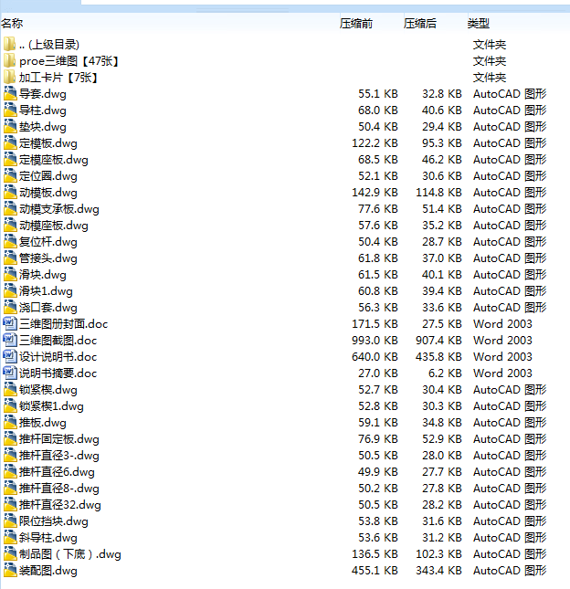 2、若题目上备注三维,则表示文件里包含三维源文件,由于三维组成零件数量较多,为保证预览截图的简洁性,本站将三维文件夹进行了打包。三维及CAD预览截图,均为本站电脑打开软件进行截图的,保证能够打开,下载原件超高清,下载后解压即可;