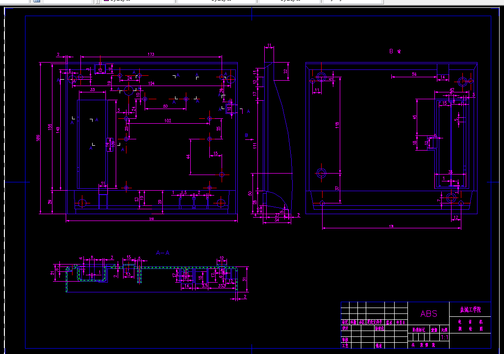 首先介绍了我国塑料模具的现状、发展趋势及我国塑料模具发展的新技术,其次围绕电话机机座下壳模具进行了设计,其主要内容包括 :针对制品的结构特点,确定模具的型腔数目、分型面以及脱模机构。选择合理的浇注系统和冷却系统。分析并设计注塑工艺,制定合理的注塑工艺流程,正确选用注塑设备。然后查阅模具设计手册,选择模架,确定模架的结构尺寸,完成模具的总体设计。同时充分利用计算机绘图软件对零件进行设计, 形成了整套注塑模具CAD图。利用Pro/E对零件进行三维造型, 并实现零件的三维装配。最后讲述了塑料模具的制造:模具的生产过程、模具的主要加工方法及模具的机械加工,并且对典型零件加工工艺进行了分析并制作了注射成型工艺。通过本次设计,对模具整个设计过程有了较好的了解。