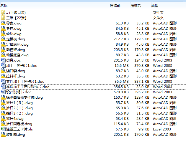 2、若题目上备注三维,则表示文件里包含三维源文件,由于三维组成零件数量较多,为保证预览截图的简洁性,本站将三维文件夹进行了打包。三维及CAD预览截图,均为本站电脑打开软件进行截图的,保证能够打开,下载原件超高清,下载后解压即可;