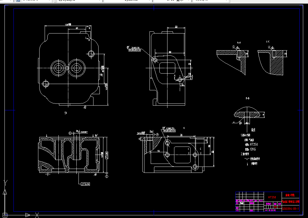 摘要:本设计课题来源于盐城市江淮动力集团。柴油机气缸盖是需要大量生产的零件,为了提高加工精度和生产效率,需要设计一种组合机床来改善柴油机气缸盖的加工情况。本组合机床是针对ZH1105柴油机气缸盖上面排气道面上2×M10—7H螺纹底孔,井气道上4×M10-7H螺纹底孔,G3/8"放置螺塞底孔同时加工的需要而设计的。该设计的内容包括总体设计和夹具设计两方面。在总体设计中分析了被加工零件的加工工艺性,选择了加工的定位基准及夹紧方案,合适的切削用量、刀具、及机床的配置型式,合适的结构方案等,同时完成了“三图一卡”的绘制。在夹具设计方面,采用了专用夹具,用符合六点定位原则的“一面两孔”定位方案消除工件的六个自由度,使工件获得稳定可靠的定位,并有同时加工零件两个表面的可能,能高度集中工序。夹紧装置则选用比较安全、可靠、方便的液压夹紧装置,使夹紧平稳可靠。本组合机床效率高,成本低,加工精度高,操作使用方便,减轻了工人的劳动强度,提高了劳动生产率,满足了设计需要。
