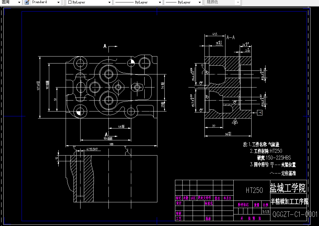 气缸盖材料为GG-30Cu,抗拉强度为300N,生产按两班制执行,年产量为中批量。