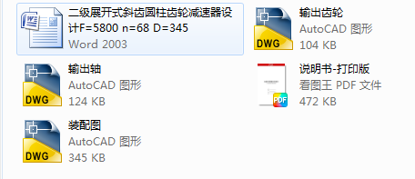 M557-二级展开式斜齿圆柱齿轮减速器设计F=5800 n=68 D=345 下载积分:50 资料编号: M557