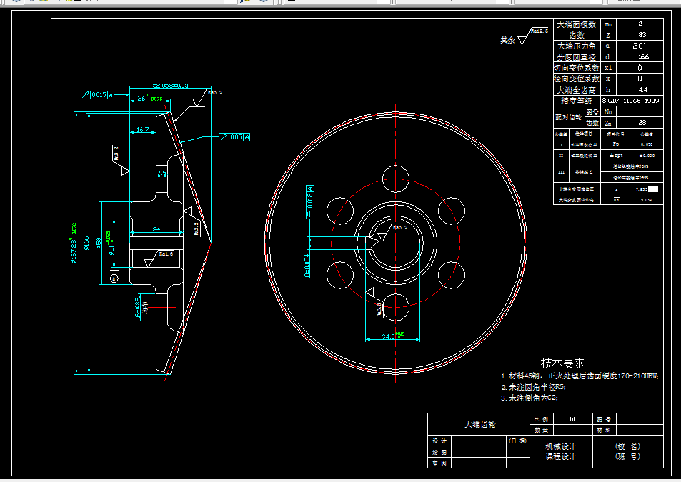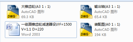 M656-一级圆锥齿轮减速器设计F=1500 V=1.1 D=220 下载积分:50 资料编号: M656