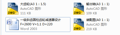 M663-一级斜齿圆柱齿轮减速器设计F=2600 V=1.1 D=220 下载积分:50 资料编号: M663