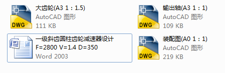 M664-一级斜齿圆柱齿轮减速器设计F=2800 V=1.4 D=350 下载积分:50 资料编号: M664