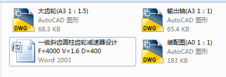 M677-一级斜齿圆柱齿轮减速器设计F=4000 V=1.6 D=400 下载积分:50 资料编号: M677