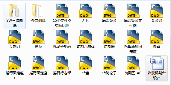 本课题是针对农作物收割机割台系统进行探讨,研究和设计。本论文首先说明了研究此课题的意义,介绍了农作物收割机的发展历程、现状、未来发展方向及国内外农作物收割机的动态;然后对其设计总体布局方案,进而再对割台机构进行方案论证;待确认方案后,就其主要部件进行设计计算与校核,最后整理,分析,校对设计的参数,看看是否满足生产要求,并总结本课题的特点和不足。