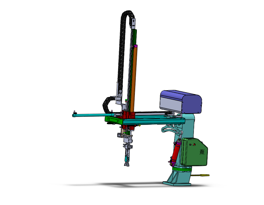 在当今大规模制造业中,企业为提高生产效率,保障产品质量,普遍重视生产过程的自动化程度,工业机械手作为自动化生产线上的重要成员,逐渐被企业所认同并采用。工业机械手的技术水平和应用程度在一定程度上反映了一个国家工业自动化的水平,目前,工业机械手主要承担着焊接、喷涂、搬运、取件以及堆垛等重复性并且劳动强度极大的工作,工作方式一般采取示教再现的方式。本文将设计一台斜臂式机械手,其拥有三个自由度,用于给注塑机取出成品。