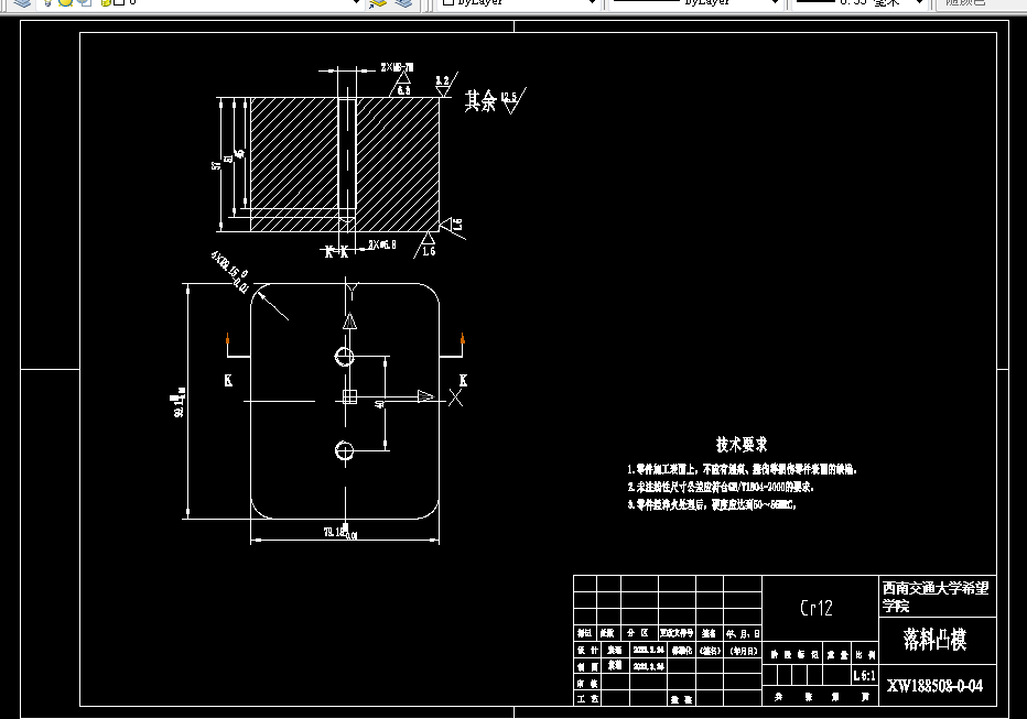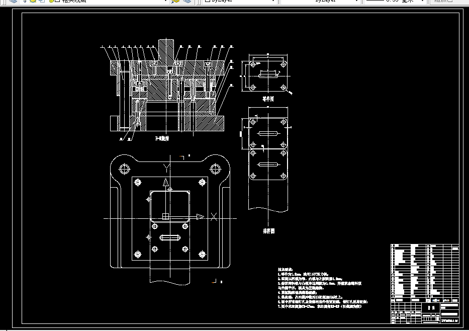 最后,设计模具的主要工作零部件结构,并且使用CAD设计软件绘制包含零件图和装配图的模具结构。