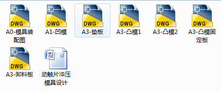本设计为动触片片冲压模具设计,根据设计零件的尺寸、材料、生产批量等要求,先分析零件的工艺性,确定冲裁工艺方案以及模具结构方案,其次通过工艺设计计算,确定排样和板料,计算冲裁压力和压力中心,初选压力机,计算凸、凹模刃口尺寸和公差,最后设计选用零、部件,对压力机进行校核,绘制模具总装图,以及对模具主要零件的加工工艺规程进行编制。其中在结构设计中,主要对凸模、凹模、凸凹模、定位零件、出件与卸料装置、模架、冲压设备、紧固件等进行了设计,并且对部分零部件进行了加工工艺分析,最终才完成这篇毕业设计。