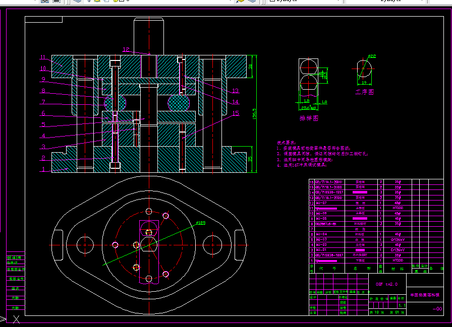 本论文应用本专业所学课程的理论和生产实际知识进行一次冷冲压模具设计工作的实际训练从而培养和提高了我的独立工作能力。本设计通过对半圆垫圈的落料模设计的工艺性分析,确定了正确的工艺方案。从而对模具设计方案,以及冲压设备作出了分析与选择。通过分析决定采用复合模形式,然后参考其他模具结构以及查手册和计算设计。当所有的参数计算完后,对模具的装配方案,对主要零件的设计和装配要求技术要求都进行了分析。在设计过程中除了设计说明书外,还包括模具的装配图,非标准零件的零件图等。