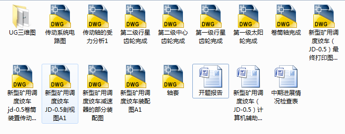 新型矿用调度绞车主要用于煤矿井下和其他矿山在倾角度小于30度的巷道中拖运矿车及其它辅助搬运工作,也可用于回采工作面和掘进工作面装载站上调度编组矿车。新型矿用调度绞车(JD-0.5)均用行星齿轮传动,绞车具有结构紧凑、刚性好、效率高、安装移动方便、起动平稳、操作灵活、制动可靠、噪音低等特点。绞车通过操纵工作闸和制动闸来实现绞车卷筒的正转和停转,从而实现对重物的牵引和停止两种工作状态。设计中绞车内部各转动部分均采用滚动轴承,运转灵活。