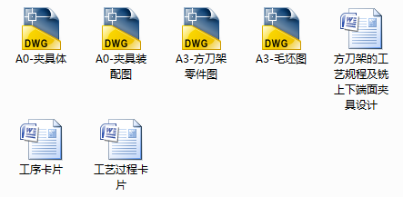 方刀架加工工艺规程及其铣上下端面夹具设计是包括零件加工的工艺设计、工序设计以及专用夹具的设计三部分。在工艺设计中要首先对零件进行分析,了解零件的工艺再设计出毛坯的结构,并选择好零件的加工基准,设计出零件的工艺路线;接着对零件各个工步的工序进行尺寸计算,关键是决定出各个工序的工艺装备及切削用量;然后进行专用夹具的设计,选择设计出夹具的各个组成部件,如定位元件、夹紧元件、引导元件、夹具体与机床的连接部件以及其它部件;计算出夹具定位时产生的定位误差,分析夹具结构的合理性与不足之处,并在以后设计中注意改进。