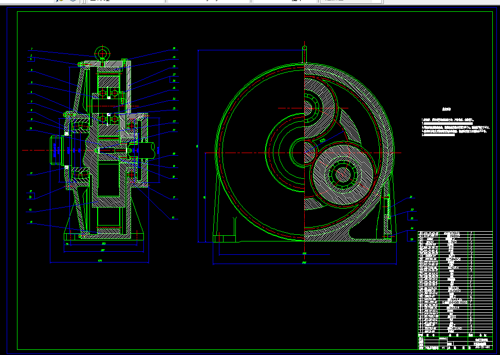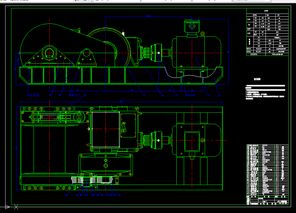 多用变速绞车主要由电动机、联轴器、液力推杆制动器、减速器、及卷筒组成。减速器包括圆锥—圆柱减速器、行星减速器。锥齿轮为格里森制弧齿锥齿轮。行星减速器采用2K—H传动形式,中心太阳轮浮动。其结构紧凑、传动比大,均载效果好。另外,本绞车取消了原淮南JM-28的整体式结构,这样可以使得铸造以及维修更加方便,大大地缩短了修理的时间,降低了维修的成本。同时,也为了适应绞车结构的需要,增设了一个过桥部件。