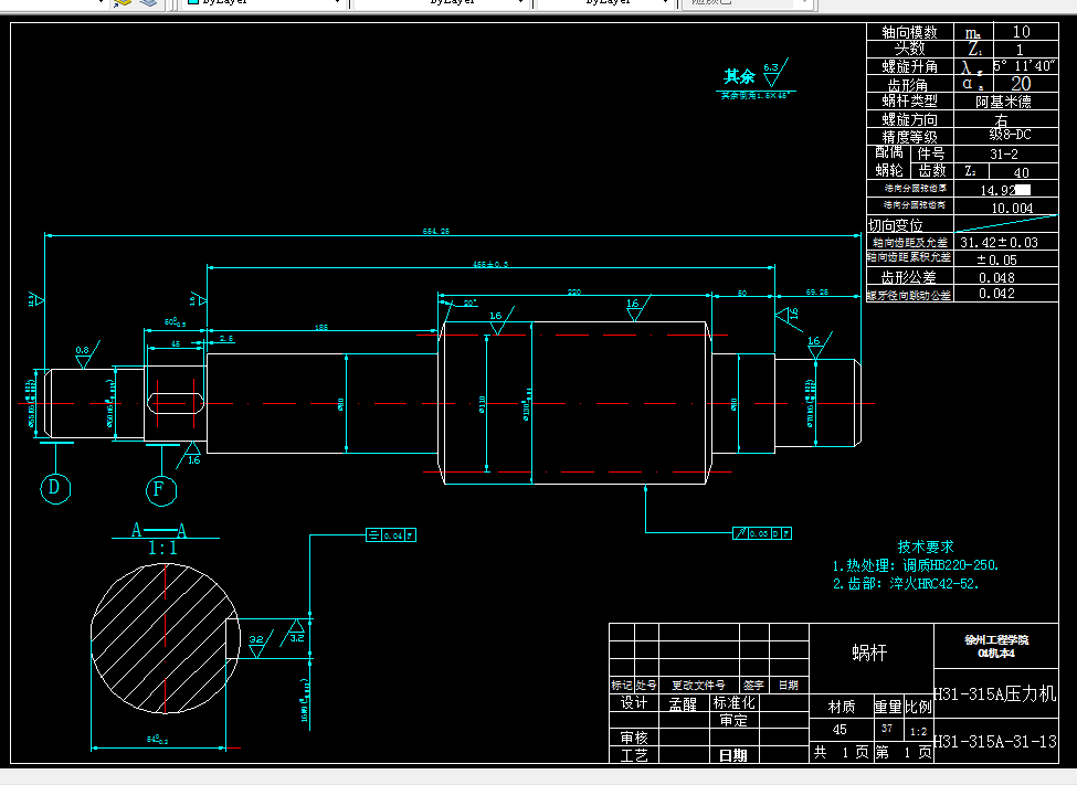 通过对机械压力机的发展现状的分析,以及参考JH31-315机械压力机的设计,确定了本课题的主要设计内容。在确定了机械压力机初步设计方案后,决定采用传统理论方法对JH31-315机械压力机滑块部分进行设计、计算、强度校核;并借用Solidworks软件的先进运算方式对机械压力机的滑块部分零件进行设计、计算以、强度校核及有限元分析;采用AutoCAD设计软件对滑块部分中各主要零部件及总装图进行了工程绘图;在参考了某公司生产的闭式单点机械压力机传动系统以及查阅了大量关于滑块部分设计的书籍后,确定传动滑块部分设计方案,绘制了滑块部分的图纸,给出了滑块部分的工作说明书,并对其进行了可行性分析,最后对整个设计进行系统分析,得出整个设计切实可行。