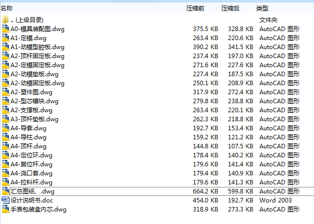 简言之,本论文就是将人们常见的手表包装盒的内芯作为设计模型,将塑料注射模具的相关知识作为依据,阐述塑料注射模具的设计全过程。