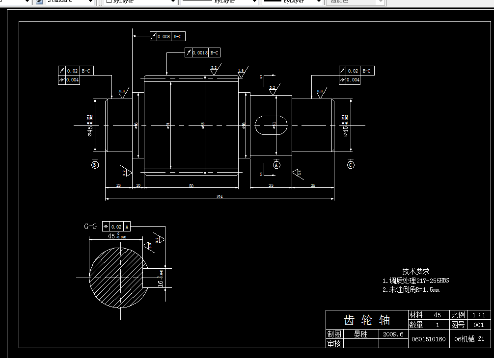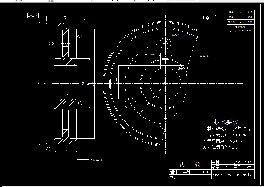 2、零件图2张(输出轴及输出轴上的大齿轮)(按1:1比例绘制)
