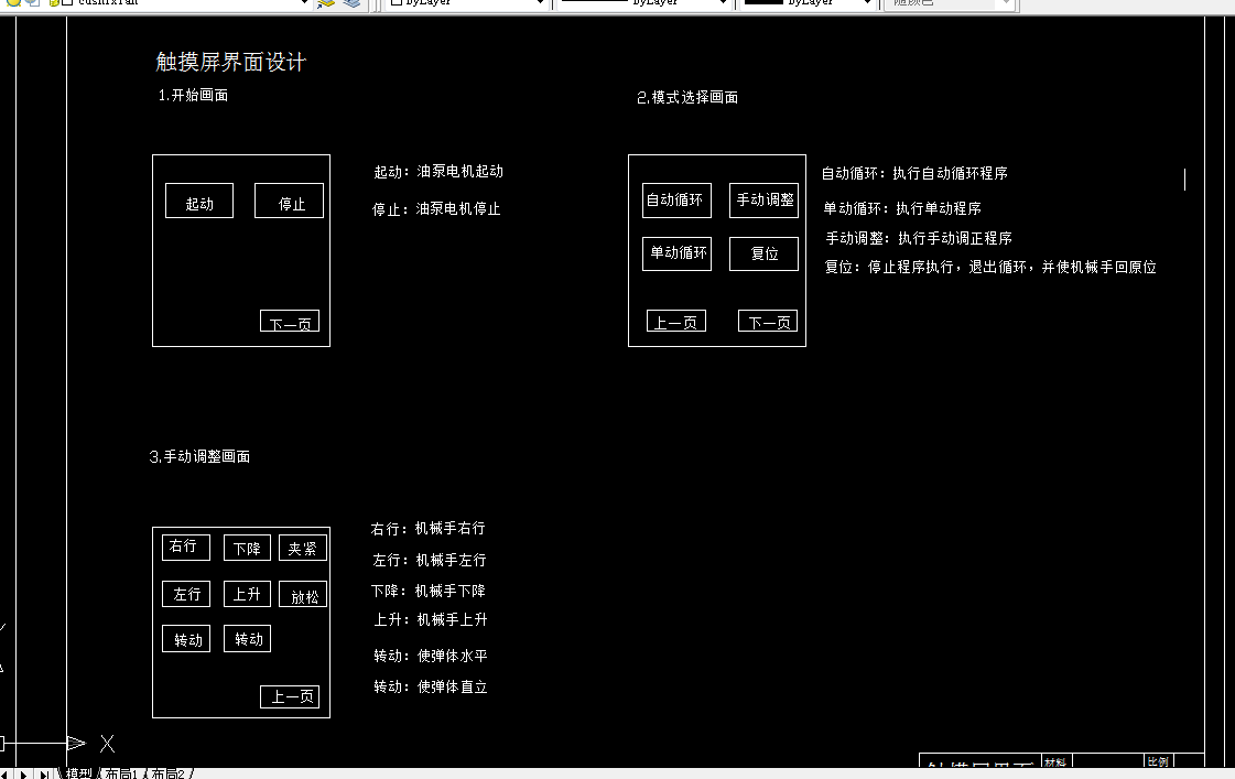 我这次毕业设计的课题是:弹体自动上下料机构。主要设计自动上下料专用机构。本次设计的自动上下料机构是利用液压系统与机械电气相配合,实现自动工作循环,液压系统设计是否合理直接影响自动线的动作性能,因此,对自动线的液压系统的设计方法和原则加以探讨是必要的。在一个工作求,而且有质的要求。因此,要使自动上下料机构实现所要求的工循环,保证所需的工作性能,方法是多种多样的,所以根据此设计题目的具体情况确定了液压系统的设计方案(见液压系统图)。一个好的上下料装置应达到: