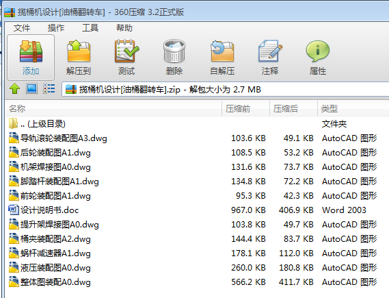 摘要:揽桶机又叫油桶翻转车,是一种小型液压起重机器。它适用于油桶的搬运、提升、翻转、装卸作业。该机器人力操作,行走稳定,操作灵活、方便,外观优美,操作简单,并具有1800翻转倒油功能,是一种典型的人机化产品。本设计依据简单的液压千斤顶原理,参考一些资料,对揽桶机进行了力学分析与计算及结构的设计,将提升、夹紧、翻转三部分作为核心设计内容,不拘一格。