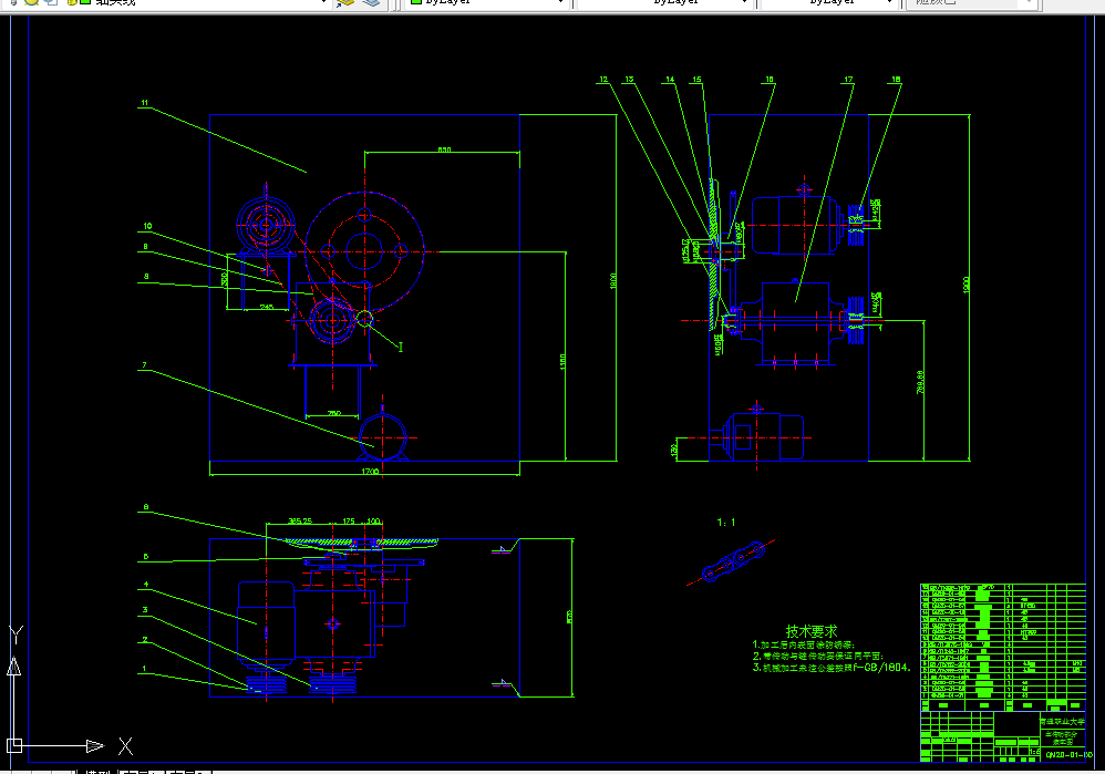 通过本次设计,我对传动部分的全过程有了清醒而直观的认识,了解了起毛机的工作原理,对轴、链轮、带轮等主要零件的设计及精度的确定具备了一定的经验知识,能够正确地选取标准零件的结构及尺寸。由于知识及实践经验的缺乏,在设计过程中,尚存在许多不足之处,尤其是减速器的体积、效果等方面,有待以后的工作、学习中改进。