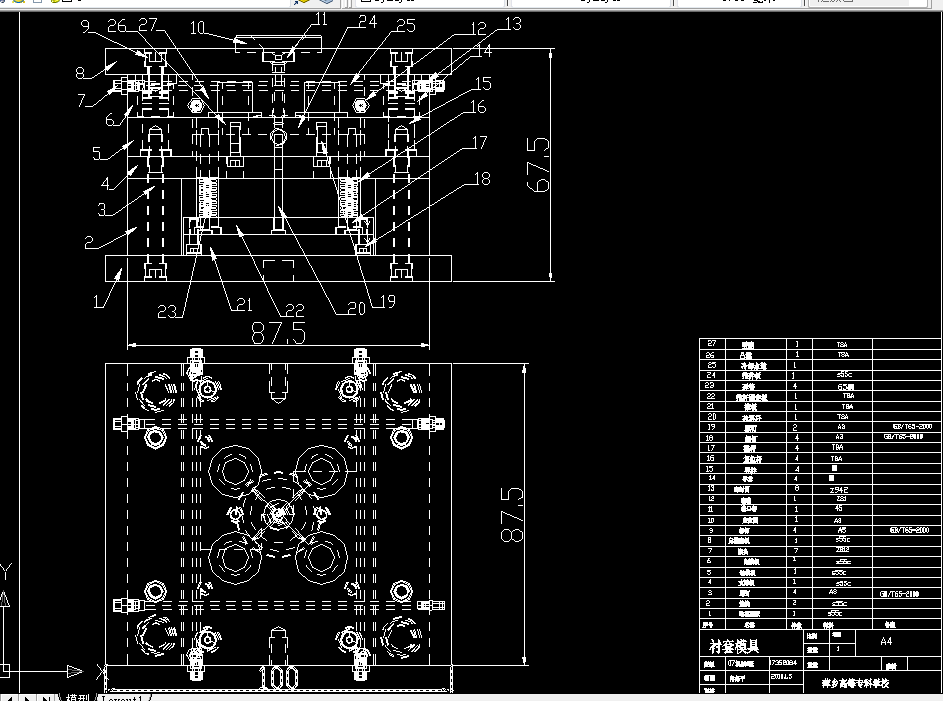 6、绘制模具的总装配图(用三维CAD绘制),制出明细表。