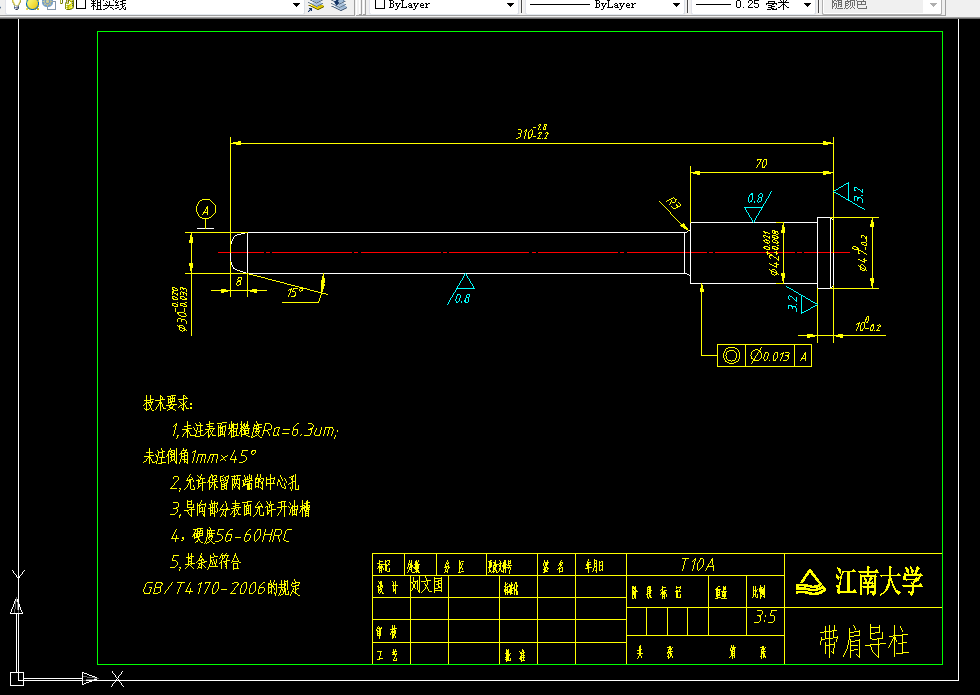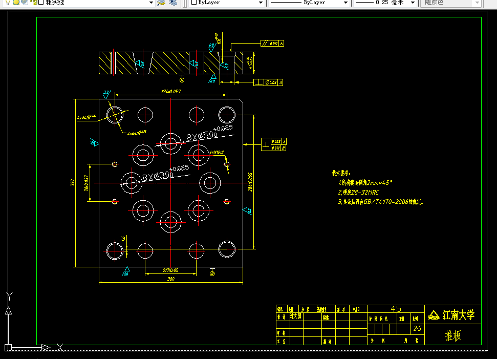 2. 一张A0或A1的模具总装图及两张A3典型零件图(要求:图纸规范符合国家标准;如:尺寸与配合)