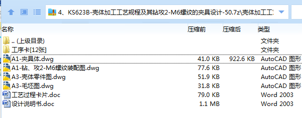 壳体零件的工艺规程及钻、攻2-M6螺纹的工装夹具设计是包括零件加工的工艺设计、工序设计以及专用夹具的设计三部分。在工艺设计中要首先对零件进行分析,了解零件的工艺再设计出毛坯的结构,并选择好零件的加工基准,设计出零件的工艺路线;接着对零件各个工步的工序进行尺寸计算,关键是决定出各个工序的工艺装备及切削用量;然后进行专用夹具的设计,选择设计出夹具的各个组成部件,如定位元件、夹紧元件、引导元件、夹具体与机床的连接部件以及其它部件;计算出夹具定位时产生的定位误差,分析夹具结构的合理性与不足之处,并在以后设计中注意改进。