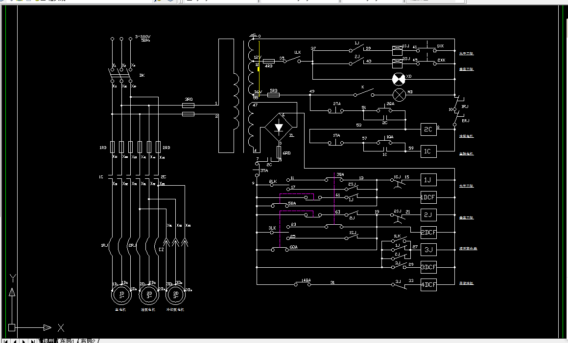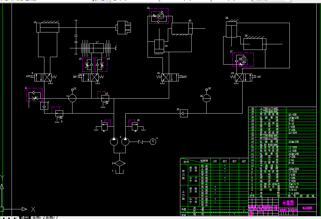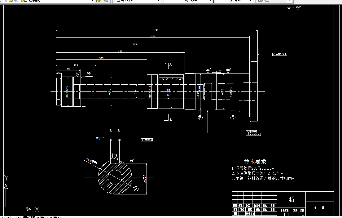 本设计从下达任务起,经过现场调查和查阅文献资料入手,历经三个月的时间完成。在设计中,首先根据课题所要求的技术参数确定机床设计中所需要的参数,即原动机的功率、机床主轴箱的转速数列公比;然后确定机床主轴箱的主传动系统结构,拟订机床的结构网和转速图;查资料,根据转速图确定机床内的各个主要零件的计算转速,根据计算转速确定各级传动的传动比,根据传动比来确定各级传动的齿轮配合的齿轮齿数。根据机床主轴箱的传动链来计算各级转速的实际值与理论值之间的误差。在设计中主要是要计算主轴箱里各个零件的选用是否满足要求以及原动机与主轴箱间的动力传递装置的计算。主轴箱的计算包括摩擦离合器的校核、齿轮的校核、轴的校核、轴承的校核、键的校核、主轴的校核计算等。原动机与主轴箱的动力传递采用的是带传动装置。最后根据资料和参考同类机床来设计计算机床的电气和液压系统,并绘制其原理图。
