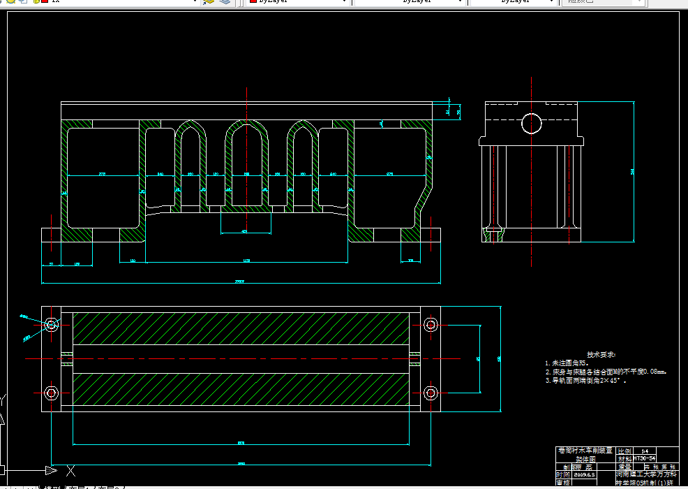 我国是一个采矿大国,也是矿山机电设备制造和使用大国。从20世纪50年代仿造第一台矿山提升机以来,至今已设计制造,使用了近6000多台。随着社会需求和现代技术的高速发展,矿山工业企业亟待生产设备及设施的机械化,电气化,现代化。而矿山工业的提升机是咽喉设备,产品不断更新换代,老产品运行年深日久,原本落后的结构问题暴露突出,故障增多,严重影响矿山的安全运转,抑制了矿山工业的高速发展,给国民经济带来了不良的影响。随着国内矿井产量的日新月异的提高,对提高提升机的安全性,可靠性,生产效率以及整机自动化运行水平,降低操作者及维护人员的劳动强度,处理设备事故的速度与对策等,成了迫切要求。对于矿井提升机的更新改造,具有极其重要的意义。例如提升机卷筒衬木的磨损严重,当衬木磨损达到一定程度时就必须更换卷筒衬木,否则就很有可能出现安全事故,影响安全生产。而更换卷筒衬木又是一个十分繁琐的过程,同时卷筒衬木价格昂贵,维修费用高,维修时间长。消耗大量人力、物力和时间的同时,又影响了全矿的安全生产和产量的需求,为此,设计一个卷筒衬木车削装置是一项十分必要的技术改造。由于考虑到现有卷筒衬木车槽装置存在许多不足之处,本文从现有卷筒衬木车槽装置的原理分析入手,通过对钢丝绳磨损的调研,卷筒部件的作用和受力情况的分析,现有车槽设备加工方法的改进和应用,立足于方便,高效、实用的前提下对卷筒衬木车削装置进行设计,目的在于最大程度的提高钢丝绳和卷筒衬木的使用寿命,降低生产成本,缩短加工和检修周期,减缓了劳动强度。通过不断地改进和完善,设计的卷筒衬木车削装置可以很方便的进行卷筒衬木车削,该装置减少了钢丝绳的磨损,又延长了卷筒衬木的使用寿命且可大幅度节约生产成本。